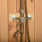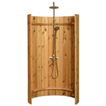 The Ellipse Outdoor Shower adds a touch of elegance to your backyard or vacation home. Crafted from western red cedar, it's easy to assemble in just hours with two people. The curved design and stainless-steel fixture offer overhead, hand-wand, and foot wash options. Connect it to a garden hose or plumbing for hot and cold water. Whether used as a free-standing unit or anchored for extra support and privacy, the Ellipse adds both beauty and function to your outdoor space.