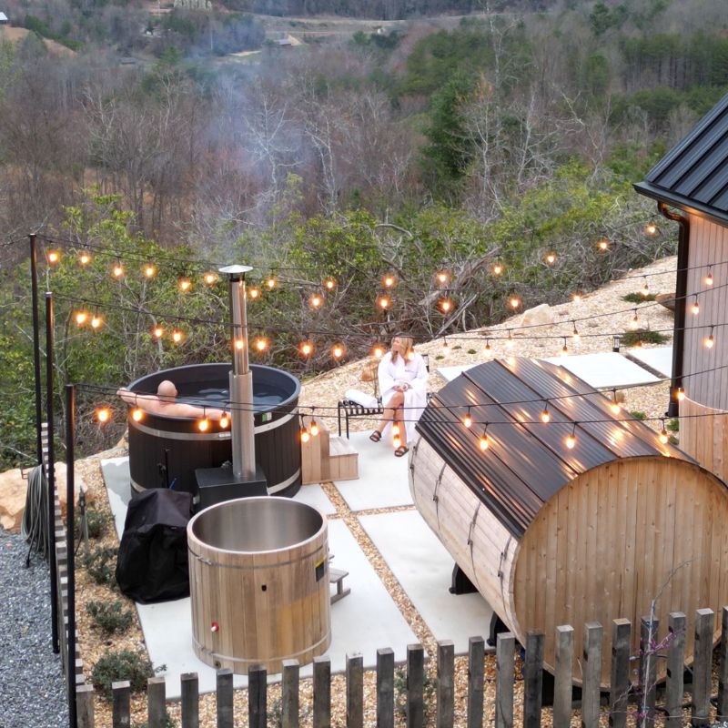 Unwind in the Huntington Sauna, powered by an 8kW KIP Heater with Dials and standard sauna stones, or soak in the tranquility of the Serenity Soak Tub, heated by a classic wood-burning stove. Both are generously sized to comfortably fit up to six people.